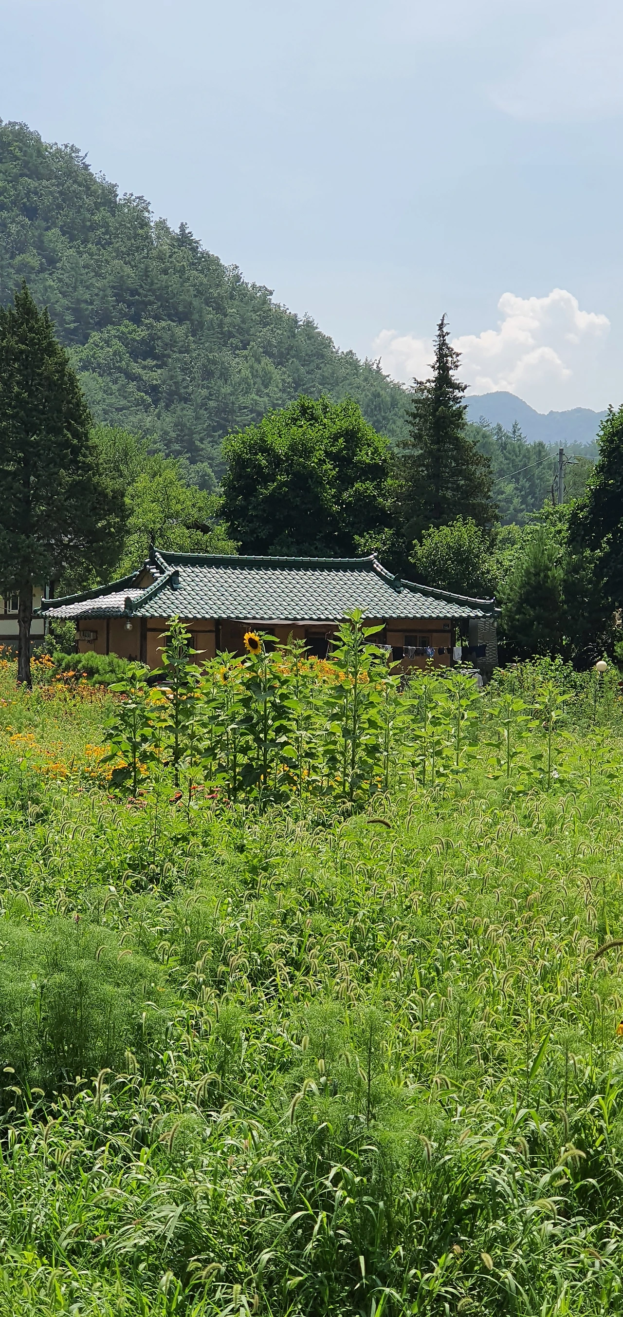 삼시 세끼를 찍었던 그 집 앞으로 해바라기가 자라고 있었습니다. 빨래가 널려있고 사방이 온통 초록인 곳에서 황토벽이 반가웠습니다. 거기 마당에 들어서면 오늘은 무슨 요리를 해 먹을까 궁리할 것 같았습니다.