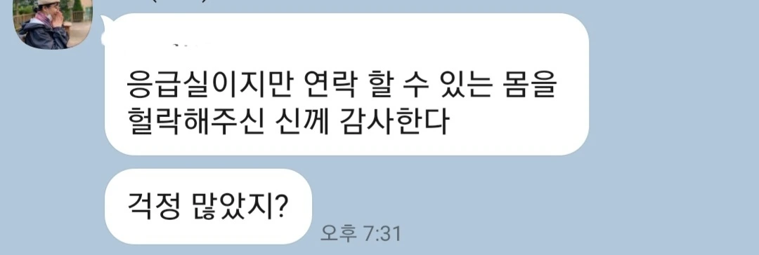 ´응급실이지만 연락할 수 있는 몸을 허락해 주신 신께 감사한다. ´
