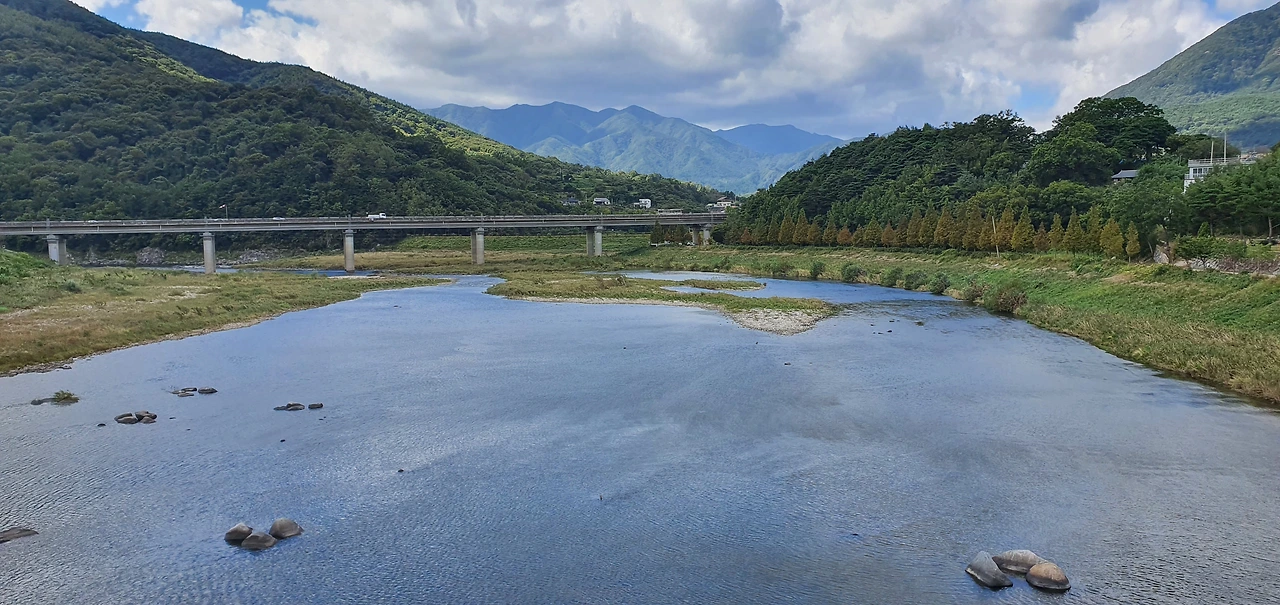 여긴 바람이 곧잘 불고 있습니다. 아침에 떠나온 그곳은 해가 났는지요. 가을꽃들도 많습니다. 살살 잘난 체를 하고 싶게 만드는 꽃들, 구절초, 쑥부쟁이, 벌개미취가 나란히 길에 피었습니다. 벼는 이 산골에서도 잘 익어가고 있습니다. 항상 밖에 나와서 이렇게 다니면 이것이 행복이다 싶습니다. 산청은 지금 한참 약재 축제가 물이 오른 듯합니다. 지리산 둘레길 6코스는 산청을 지나갑니다. 우리는 지금 앞으로는 경호강, 사방으로 산이 펼쳐진 속에서 잠시 앉아있습니다. 바람이 서늘합니다. 금방 일어서야겠습니다.