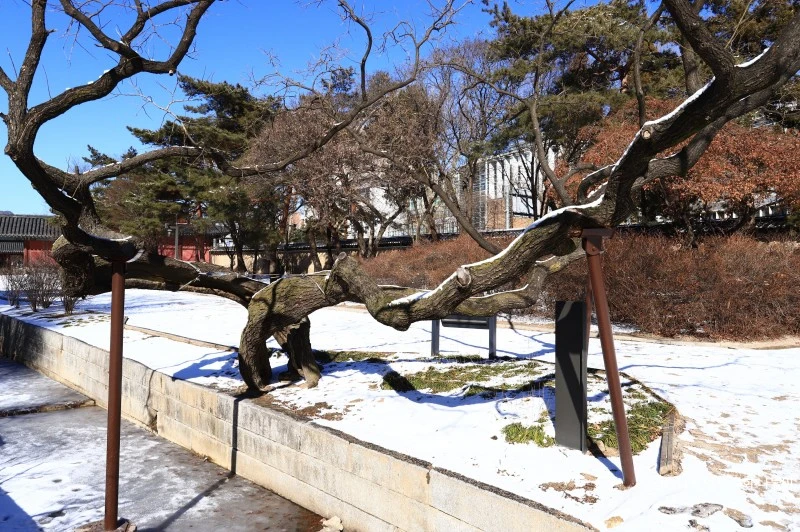 ¶사람들은 모두 한 줌의 흙이 되었지만 묵묵히 아직도 자리를 지키고 있는 생명체가 있다. 당시 창경궁에 자라고 있던 고목나무들이다. 특히 선인문 앞의 회화나무는 비극의 처음과 마지막을 모두 지켜봤다. 정문인 홍화문에서 궁궐 담장을 따라 10여 미터쯤 남쪽으로 내려오면 규모가 훨씬 작은 또 다른 출입문이 하나 있다. 지체가 낮고 궁궐의 여러 가지 잡일을 담당하던 하급 관리들이 주로 이용하였던 문이다. 아울러 임금의 미움을 받아 궁궐에서 죽음을 당했을 때 시신이 나가는 비극의 문으로 사도세자의 주검도 마찬가지였다. 문의 안쪽 금천에 걸친 작은 돌다리의 늙은 회화나무가 바로 그 나무다. 당시 쉰 살 남짓했던 이 나무는 1830년경에 궁궐의 전각과 나무를 상세히 그린 동궐도에서도 만날 수 있으며 나이는 삼백 살쯤 됐다. 박상진, 나무 탐독에서.