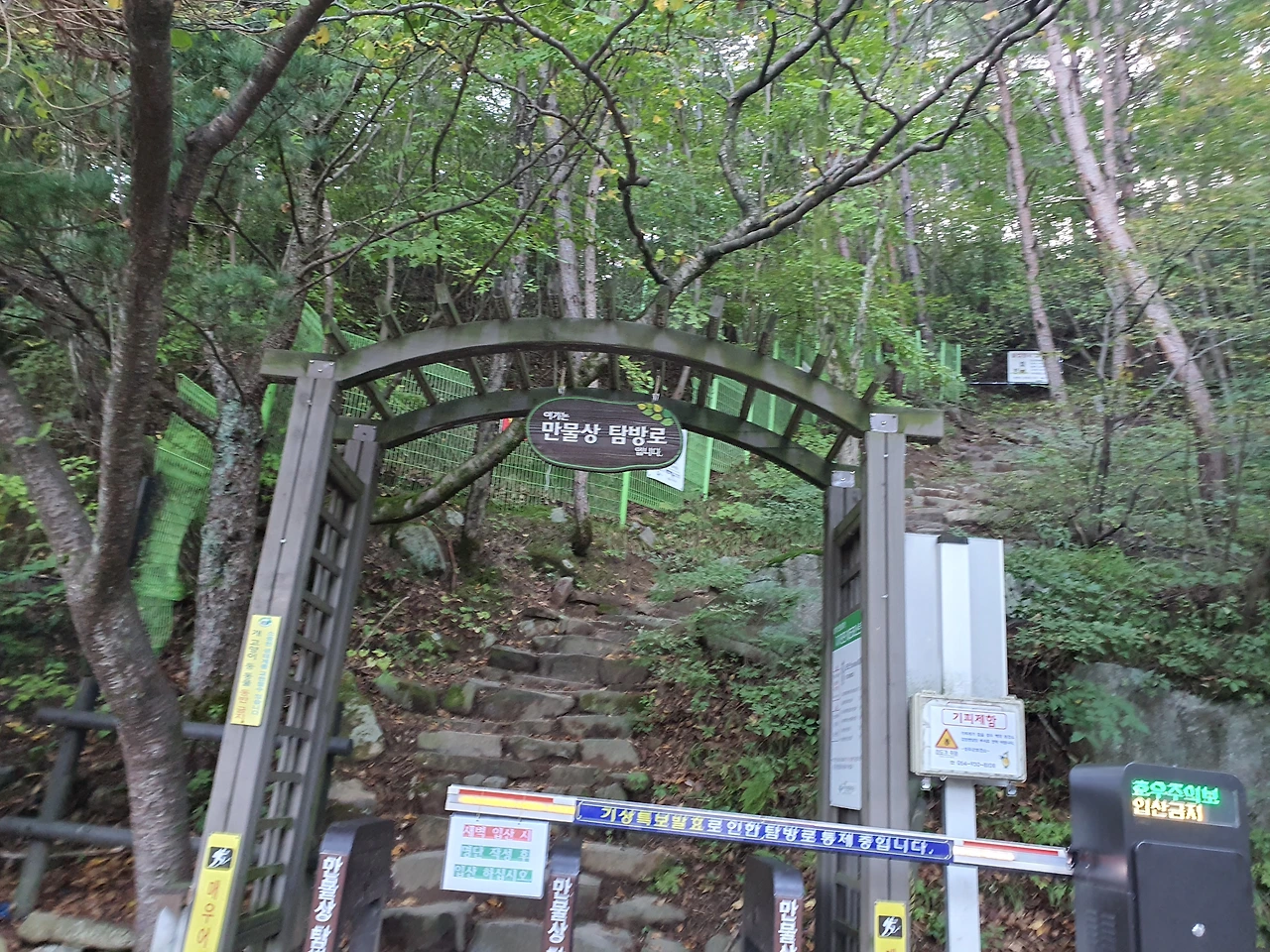 백운동 탐방지원센터에 멈췄다. 올해는 '백운'이란 이름과 연을 맺는 것 같다. 여름에는 광양, 백운산을 올랐지 않았나. 거기에 두 갈래 길이 있었다. 그야말로 '가지 않은 길'이 펼쳐졌다. 왼쪽은 만물상 탐방로, 오른쪽은 용기 골 탐방로, 두 입구 사이의 거리는 10미터 남짓. 그 10미터가 얼마나 큰 차이를 내는지 그때는 전혀 몰랐다. 아니 대충을 알았지만 그것은 머리로 아는 차이였고 내 몸과 마음은 까맣게 모르고 있었던 것이다. 망설일 줄 아는 것도 망설이지 않는 것도 모두 필요하다. 상황마다 사정이 다르고 사람마다의 사정은 그보다 더 심하다. 만물상이 보고 싶었다. 보고 싶은 것은 어쩔 수 없지, 몸과 마음을 수련하기에 그 만한 것은 없을 것이다. 내가 오르는 길이 만물상인 것을 다 오르고서야 알았다. 백 걸음을 오르고 숨을 고르면서 바라다보는 바위 군상들은 군사 같았으며 신하 같았고 기다랗게 합장하고 늘어선 나한들 같았다. 부처 앞에서 부처가 되어 가는 돌을 쓰다듬으며 나도 그 세월 한쪽에 부호 하나 찍어둔 것 심정이었다. 소나무들이 곡예사 같았다. 한두 그루가 아니었다. 바위만 있었던들 산이었을까 싶었다. 개미가 기어가는 것이 보이고 노란 나비도 나를 따라 능선을 올랐다. 잊으려고 해서야 잊을 길이 없다는 것을 산에나 와야 안다. 숨이 가빠지면 하나만 생각한다. 숨, 숨 쉬는 것만 남는다. 내가 벗은 줄도 모르고 벗어놓은 시름과 권태, 욕구는 누가 가져갔을까. 그 쓸데없는 누더기들을 누가 몰래 숨겼을까. 하늘 파란 것이 산국화 흰색과 어울렸다.