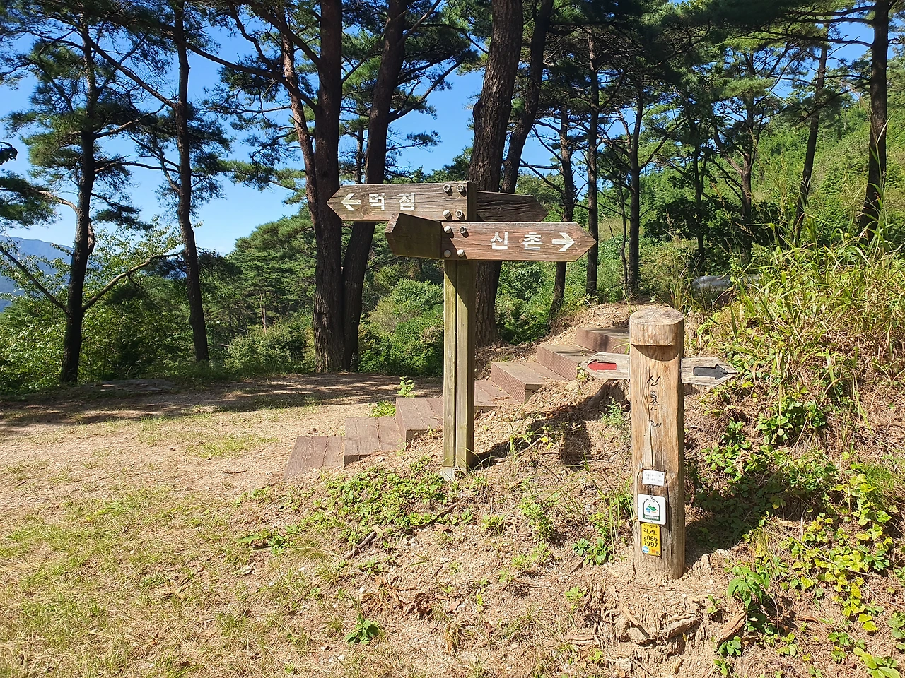 해발 458m 고지가 사람을 꽤나 고생시켰다. 고생하러 나와서 편하려고 하는 나를 발견하는 일, 걷기는 부드럽기 그지없는 회초리다. 주변에서는 그나마 높은 고개여서 그런지 갈라지는 길이 여러 개다. 구재봉으로 가는 길, 분지봉으로 가는 길, 우리는 먹점 마을로 내려간다. 야호, 강이하고 엄마가 드디어 내리막이라고 좋아했다. 옆에서 좋아하면 덩달아 기분이 좋아지는 것이 동행 아니냐. 나도 털털 힘을 빼고 걸었다. 산이는 꾸준히 마이 웨이다. 힘들다는 말도 심심하다는 말도 아직이냐는 말도 없다. 아이 생각이 궁금했다. 오늘 다 걷고 저녁은 산이가 먹고 싶은 거 먹자. 내 회유는 늘 먹을 것이다. 한참을 올라갔으니까 한참을 내려왔다. 어? 어?