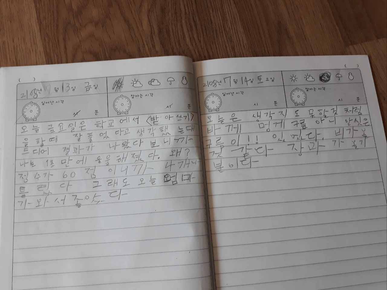 "아빠, 내가 썼던 것 중에 생각나는 것 있어?"