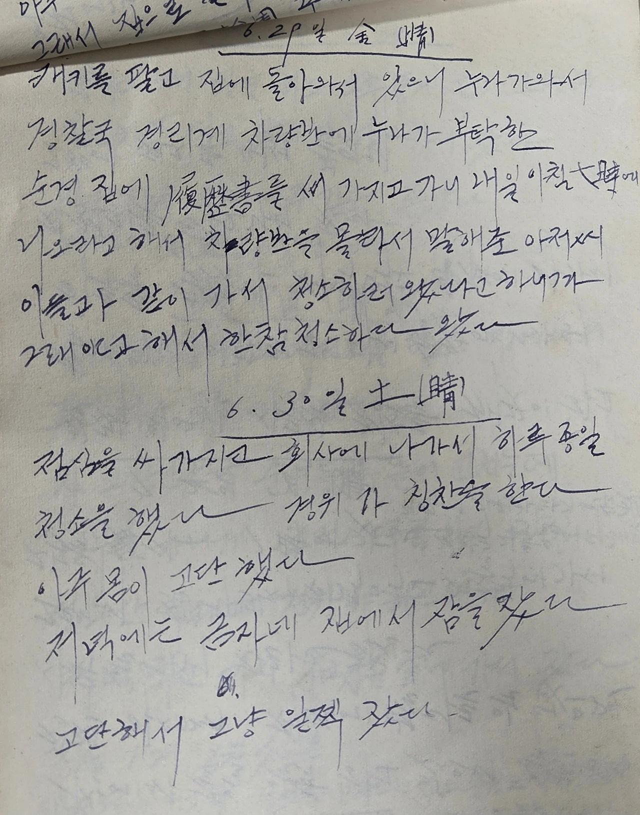 캐키를 팔고 집에 돌아와서 있으니 누나가 와서 경찰국 경리계 차량반에 누나가 부탁한 순경 집에 가서 이력서를 써가지고 가니 내일 아침 10시에 나오라고 해서 차량반을 몰라서 말해준 아저씨 아들과 같이 가서 청소하러 왔다고 하니까 그래라고 해서 한참 청소하다 왔다.