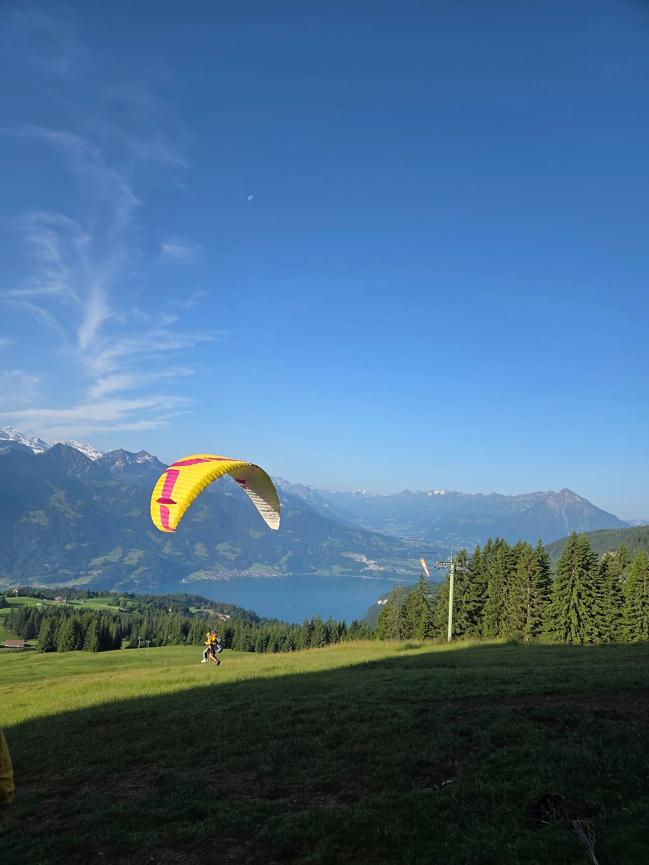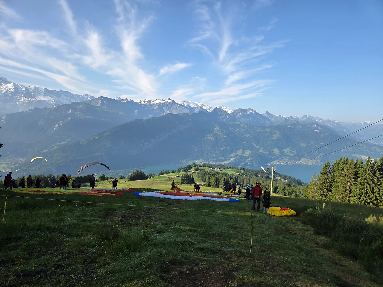스위스 여행의 둘째 날이자 마지막날, 첫 일정은 '패러글라이딩'이었다. 나는 살면서 한 번도 패러글라이딩을 해본 적이 없었고, 비행기를 제외하면 하늘을 날아본 경험이 전무했다. 무섭기도 했지만 30만 원가량 하는 큰 금액 때문에 망설이기도 했다. 그러나 스위스 패러글라이딩을 '꼭 해야 하는 경험'으로 꼽는 후기가 많았기에 용기 내서 신청을 했다.