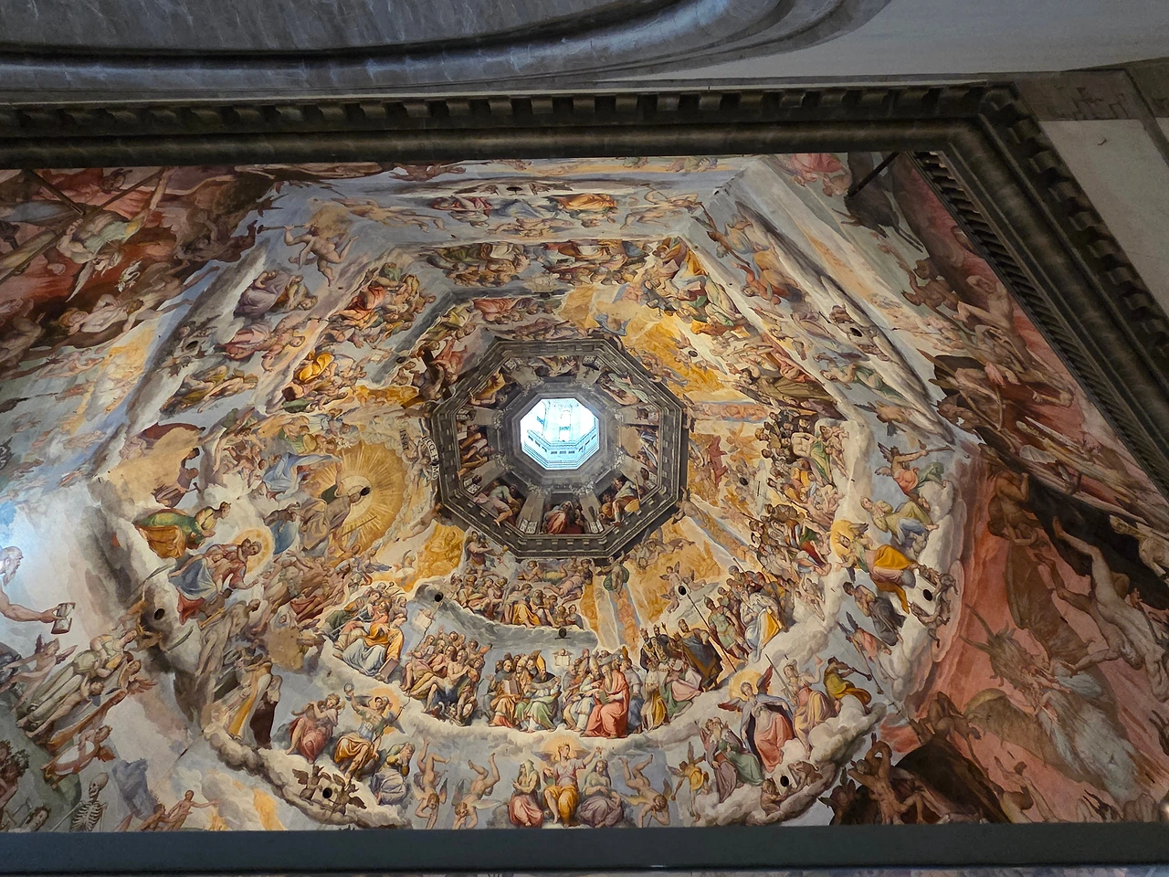 그래도 올라가는 길에 돔의 내부를 빙 둘러가는 길이 있었는데, 그 길을 걸으며 그림을 감상할 수 있었다. 천장에 그려진 그림은 정교하고 웅장해서 넋을 놓고 바라보게 됐다.