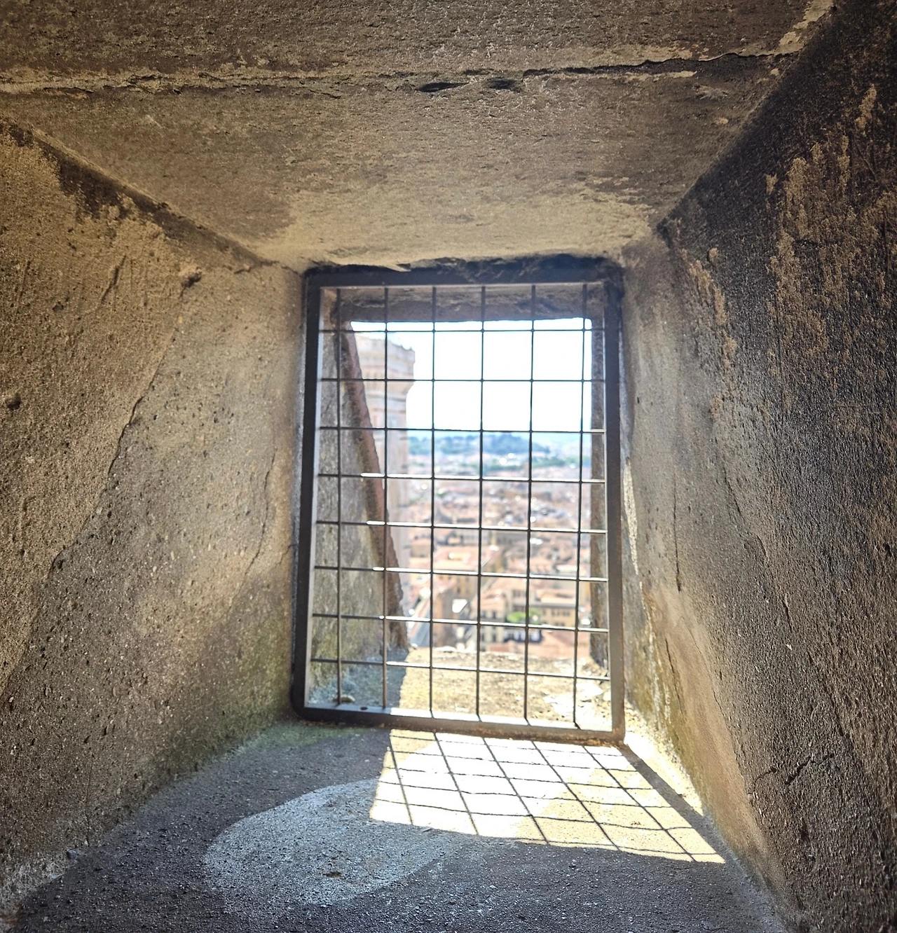 계속 가다 보니 중간에 작은 창문이 있어서 밖을 내다봤는데, 거의 다 올라온 것 같아 의지가 살아났다. 그런데 올라갈수록 계단은 가파르고 좁아져서, 난간을 잡으며 후들후들한 다리를 지탱했다. 그리고 마침내 환한 햇빛이 쏟아지며 도착을 알렸다. 힘들었지만 정상에 서니 고생은 순식간에 잊혔다.