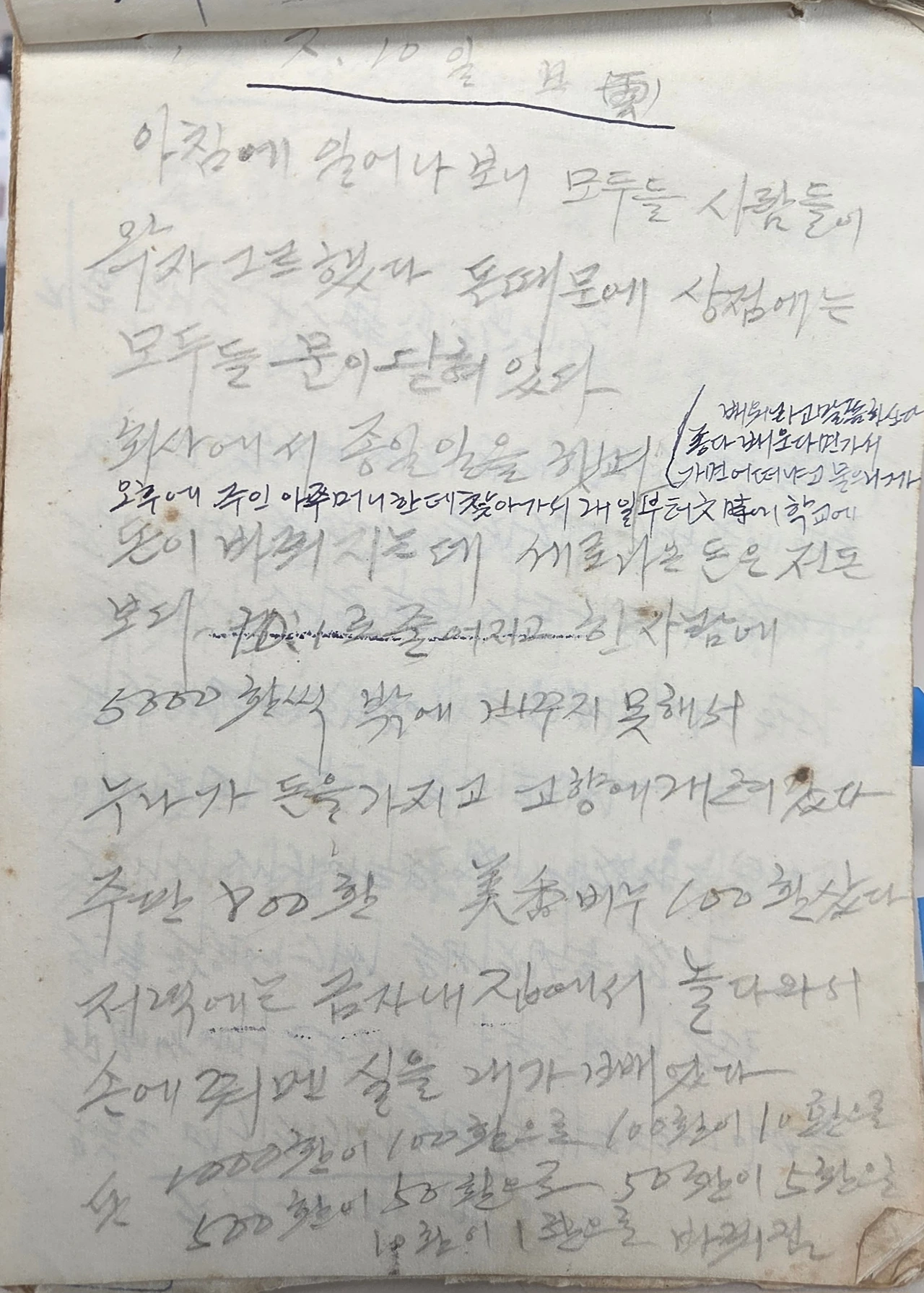 일기장에 생생히 기록된 1962.6.10 화폐개혁