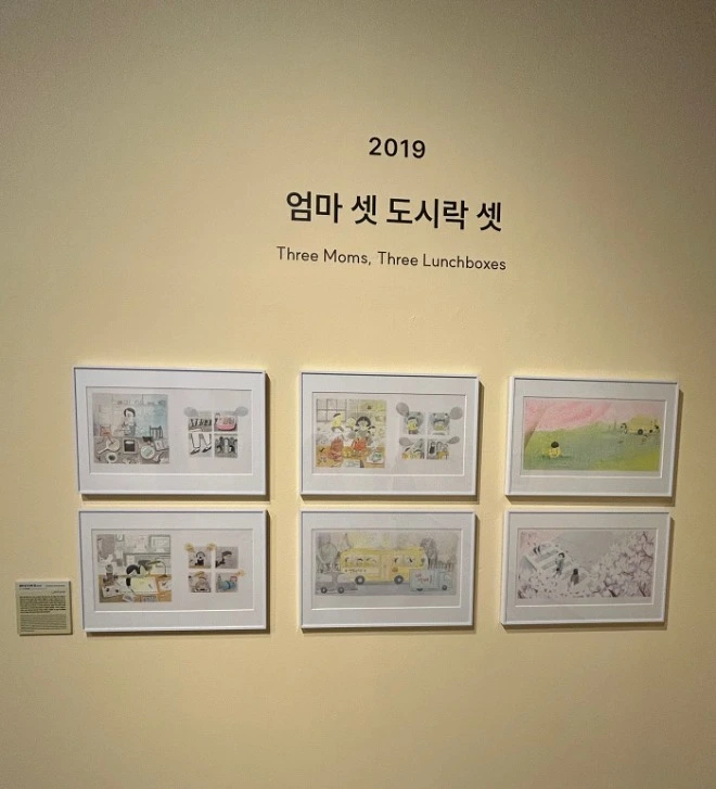 나는 전시장을 둘러보며, 작품 설명을 하나하나 읽어나갔다. 국지승 작가님의 작품은 가장 처음 마주한 작품이자, 오랫동안 마음에 남은 작품이었다. '아빠 셋 꽃다발 셋'과 '엄마 셋 도시락 셋'은 각기 다른 모습으로 일하는 부모님이 아이들의 음악회에 참석하기 위해, 소풍 도시락을 싸주기 위해 분주히 움직이는 모습을 담았다. 작품 속 고군분투하는 부모님의 모습을 보며, 나는 나도 모르게 주먹을 불끈 쥐고 응원하고 있었다.