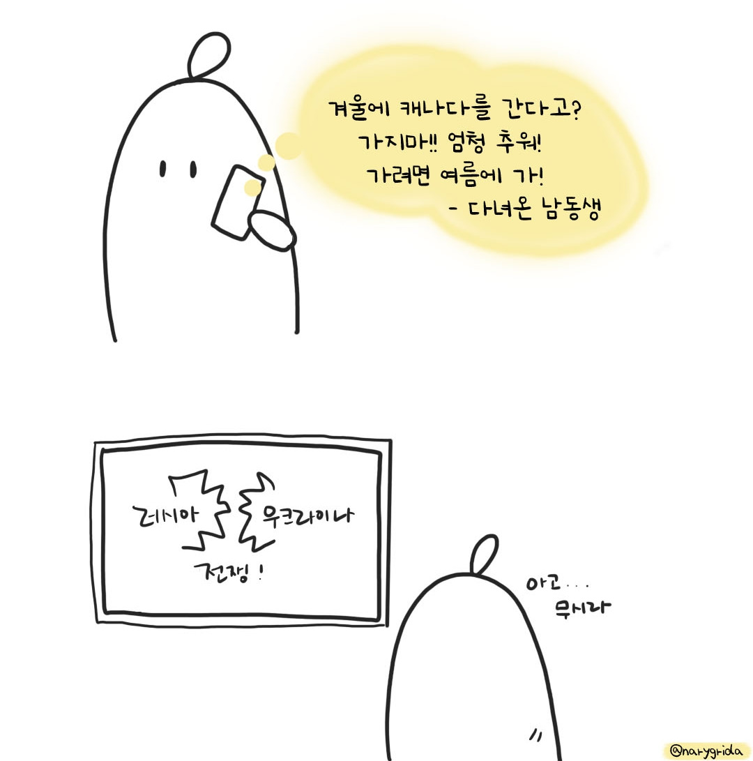 동생의 말대로 더 추운 캐나다는 패스하고 전쟁 중인 두 나라와 가까운 튀르키예도 후보에서 탈락시켰다.