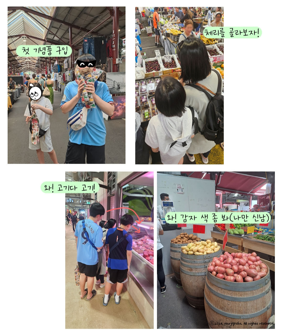 식료품과 화훼, 농축산물, 기념품, 의류까지 파는 종합시장인데 6시에 열어 오후 3~4시면 영업을 끝내는 곳이라 벌써 문 닫은 매장들도 있었다. 축산물 코너에서 수제 소시지와 딱 바로 구워 먹을 수 있게 준비된 고기들을 보며 입맛을 다셨고, 다양한 품종의 감자들과 처음 보는 채소와 꽃들이 신기한 것도 잠시였다. 정말 날이 너무 더웠다. 당일 맛볼 체리와 망고를 사서 숙소로 돌아가 쉬기로 결정했다.