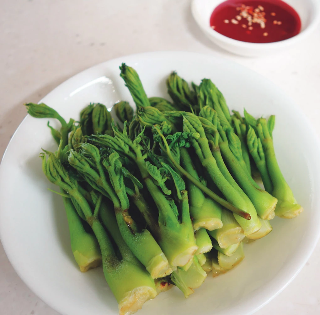 특정한 시기나 계절에 먹어야 영양가 만점인 게 제철 음식이다. 그렇다고 영양소 믿고 입에 마구 처넣는 건 아니다. 기분 탓이겠지만 해가 다르게 겨울이란 계절이 끝이 보이지 않는 터널처럼 어두침침하고 길게만 느껴진다. 이듬해 봄은 어김없이 올 테고 필사의 탈출을 시도하지 않더라도 출구는 보이게 마련이지만 긴 기다림에 녹초가 된 심신은 회복을 위한 긴 몸조리 또한 필요로 한다. 그때 마침 등장하는 두릅은, 하여 제철 음식이기 이전에 한 해를 제대로 나기 위해서라도 아니 먹고는 도저히 못 배기는 자양강장제나 다름없다. 두릅을 씹으며 새롭게 전의를 다진다는 표현은 그런 이유에서다.