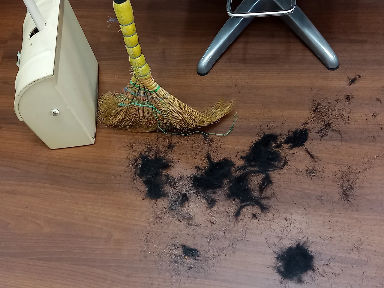 허나 작업이 끝나자마자 처지는 확 달라진다. 산지사방에 나동그라진 머리털을 쓸어 담으려고 빗자루와 쓰레받기를 집어드는 순간, 잠시 잊고 있었던 육신의 고통이 너울처럼 사정없이 몰려든다. 특히 뻣뻣하게 직립을 고수했던 허리가 그깟 잡것에 어이없이 굴복하고 말면 쑤시고 마치는 통증이 친구하겠다고 달려든다.