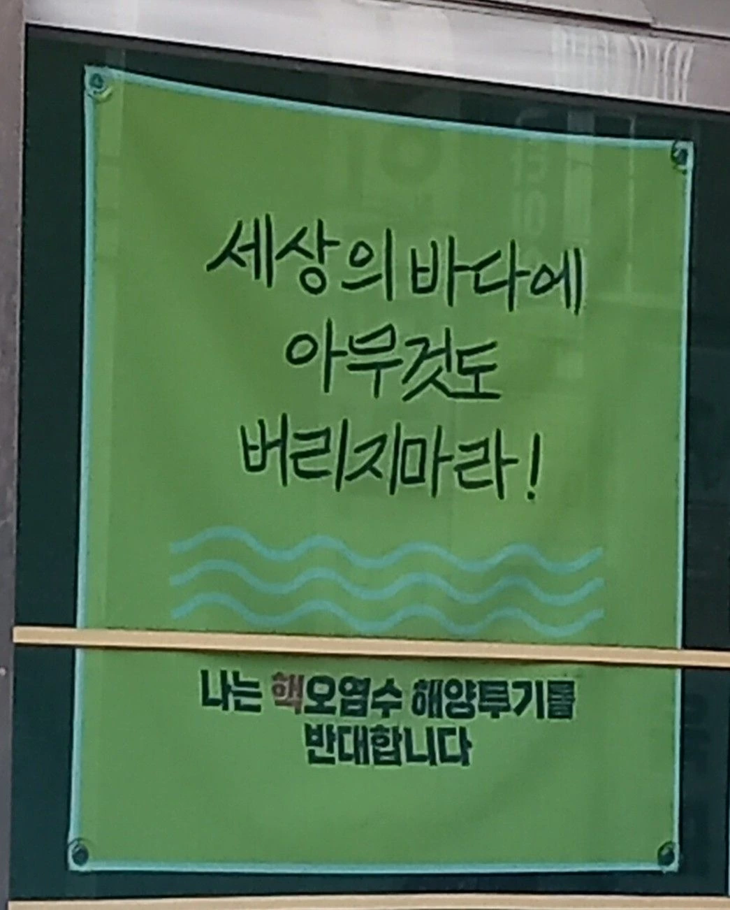 아마도 후쿠시마 오염수 무단 방류가 세상의 큰 이슈가 되었던 때로 추정하지만 부동산 점방 주인과는 걸개와 관련해 직접적으로 대면한 적이 없어 그녀(수더분한 이미지의 젊은 여자가 부동산중개인이다)의 정치사회적 성향을 미루어 짐작만 할 뿐 구체적으로 알 길은 없다.