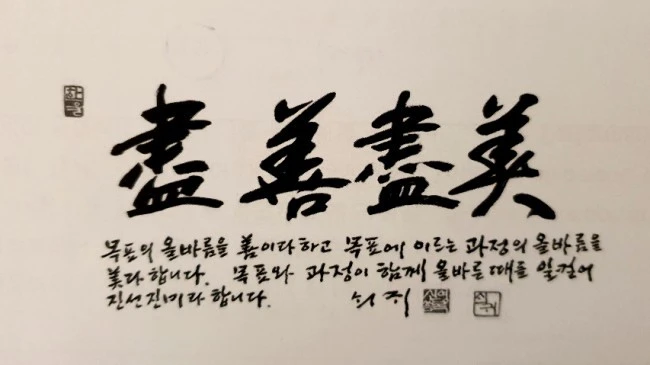 “목표의 올바름을 선善이라 하고 목표에 이르는 과정의 올바름을 미美라 합니다. 목표와 과정이 함께 올바른 때를 일컬어 진선진미盡善盡美라 합니다.”