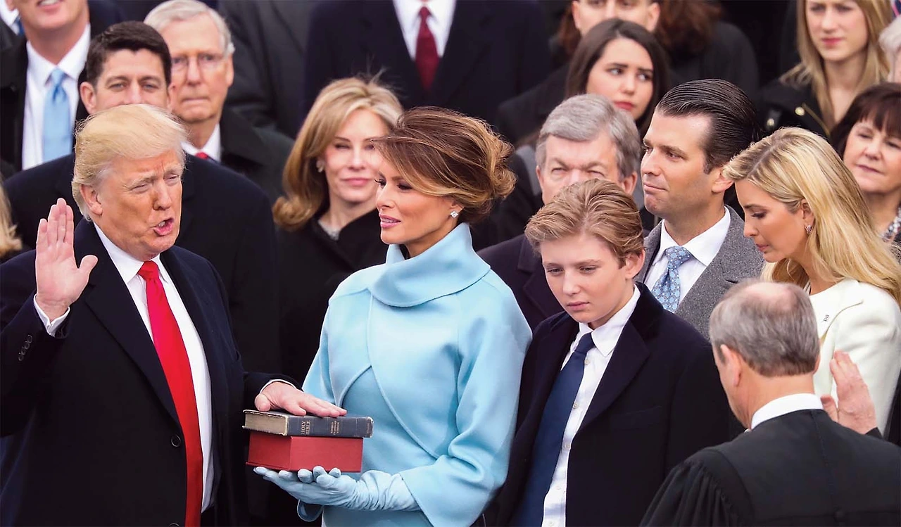 국가의 틀과 국민의 자유를 보장하는 기본 틀인 헌법에 손을 얹고 선서를 한다는 것은 대통령 된 자가 누구를 위해, 무엇을 위해 직에 임할 것인지를 만방에 천명하는 행위다. 그런데 그런 헌법책 대신 성경에 손을 얹고 선서를 한다면, 누구를 위한 대통령이고 무엇을 위한 대통령일까. 유구한 전통을 자랑한다는 미국 대통령제가 미개해 보이는 순간이다. 미개한 전통이니 미개한 대통령이 등장해 세상을 쑥대밭으로 만드는 게 우연이 아니다.
