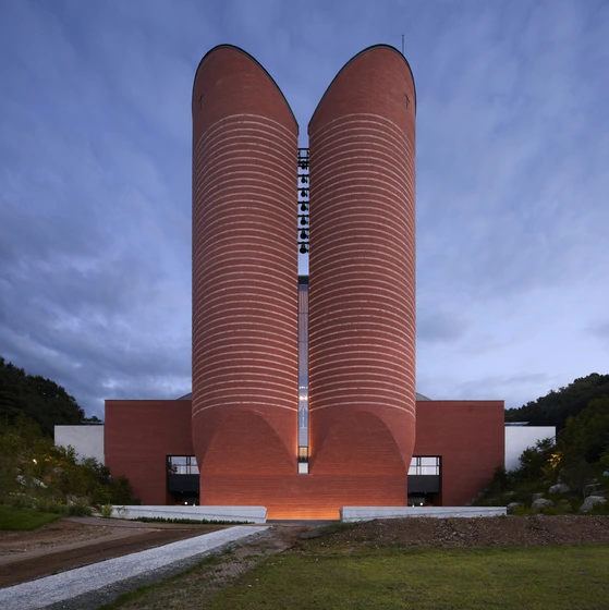 또 빛이다. 성지의 끄트머리 골짜기에 마치 댐처럼 대성당을 살짝 묻고 그 앞에 52m 높이의 원통형 타워 두 동을 세웠다. 타워의 유리 천장을 통해 내부로 빛이 쏟아지는 '빛의 타워'. 타워 아래에는 제대祭臺를 설치했는데, 때론 빛이 천사의 날개 모양을 그려내기도 한단다. '타워가 이 장소의 풍경을 바꿀 것'이라고 마리오 보타는 말했다고 한다.(<한은화의 공간탐구생활>, 중앙일보, 2022.01.08. 참조)