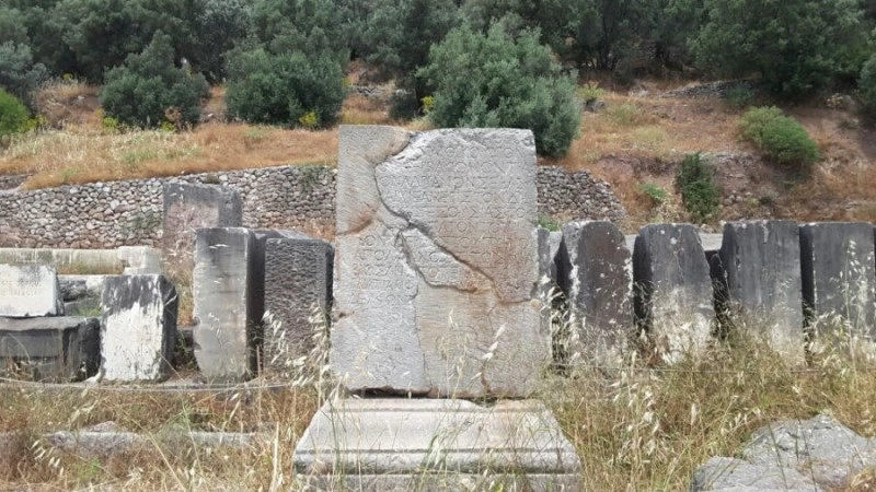 2세기 로마시대 집정관이자 작가였던 플리니가 이 곳에 와 고대 그리스인들이 남긴 세 가지 새김글을 발견하였다고 전한다. 하나는 ‘그노티 세아우톤’, 즉 ‘ 너 자신을 알라’이다. 자신을 응시하고 자신을 객관적으로 볼 수 있는 사람이 지혜로운 자다. 두 번째는 ‘메덴 아간’, 즉 ‘어느 것도 무리하게 실행하지 말라’이다. 지혜로운 삶은 중용을 지키는 삶이다. 세 번째 새김글은 ‘엑귀아 파라 다테’, 즉 ‘지킬 수 없는 약속을 하지 말라. 불행이 가까이 와 있다’이다. 지혜로운 자는 자신의 한계를 분명하게 인식하고 침묵을 지키는 자다.(배철현 서울대 종교학과 교수, <카타르시스, 배철현 비극 읽기-새로운 세계의 질서는 복수가 아닌 역지사지의 공감 위에서>, 한국일보, 2017.09.02.)