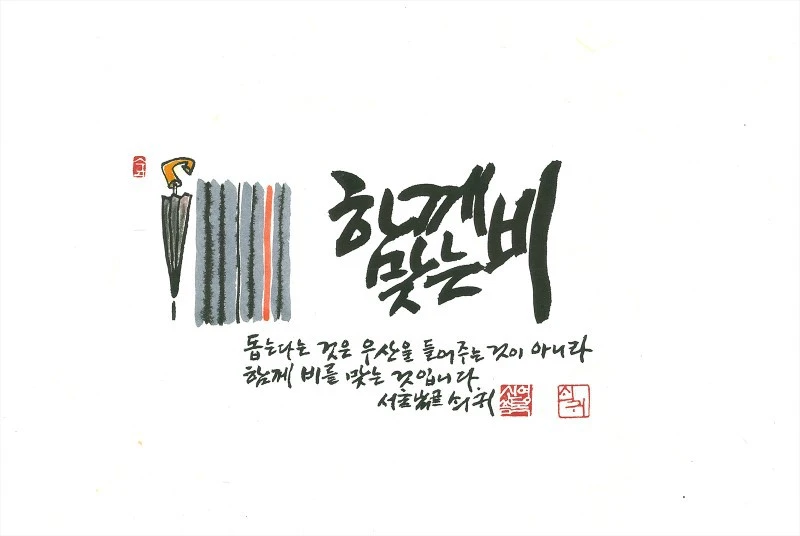 "그럼 이리 물어보지. 비가 추적추적 내리는 밤에 우산을 쓰고 걷는데 저 앞에서 우산도 없이 터벅터벅 걸어가는 친구를 보면 김사장은 어떻게 할 텐가?"