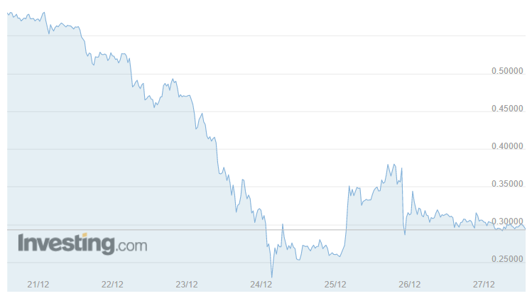 우리 시간으로 24일 오전 8시 17분 기준 XRP는 24시간 전에 비해 38% 폭락해 0.27달러로 제로(0) 달러에 더 근접했다. XRP는 SEC 제소 이전까지 0.6달러선을 유지하고 있었다.