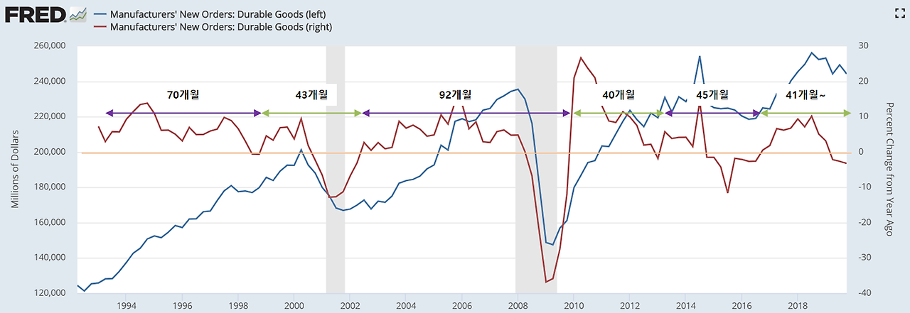 약 9년의 주기의 주글라 사이클에서 이야기하는 설비투자지수를 반영하는 내구재 주문 지수입니다.