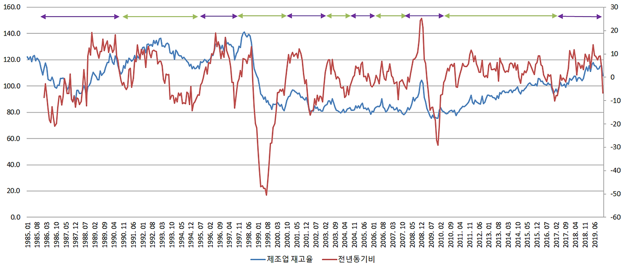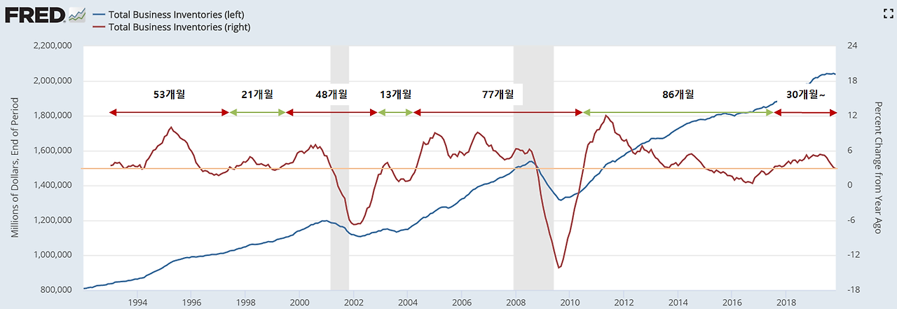 그리고 4년의 주기의 키친 순환에서 이야기하는 미국의 재고순환지수입니다.