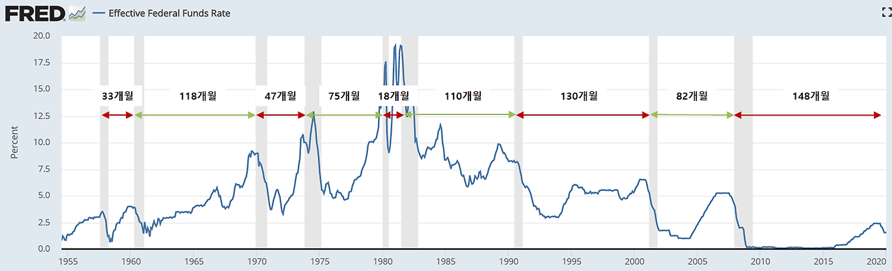 먼저 미국의 경제 불황 발생 주기를 살펴보도록 하겠습니다.