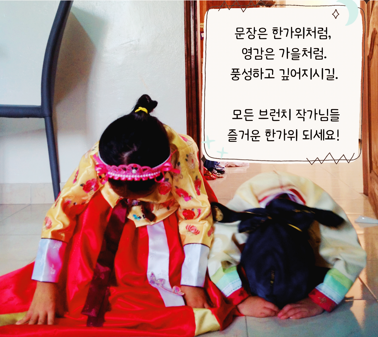 하지만 한국인의 피가 흐르는 엄마와 아빠는 그날을 그냥 흘려보낼 수가 없었어. 멀리 떨어져 있어도, 명절의 온기만큼은 너희에게 느끼게 해주고 싶었거든. 그래서 엄마가 먼저 말했지.