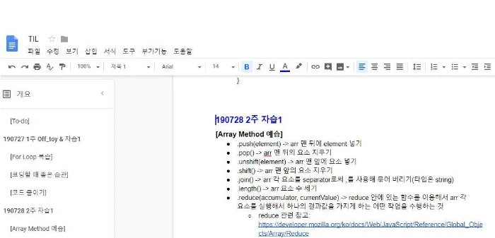 의도적으로 학습 방식을 변경할 생각은 없었는데 자연스럽게 알고리듬 문제를 풀다 보니 1주 차에 배운 내용을 넘어서는 부분을 마주하게 되었고, 이때 구글링을 통해서 관련된 글을 읽는다거나 부트캠프에서 제공하는 학습 영상/슬라이드를 살펴보면서 예습을 해나가게 되었다.
