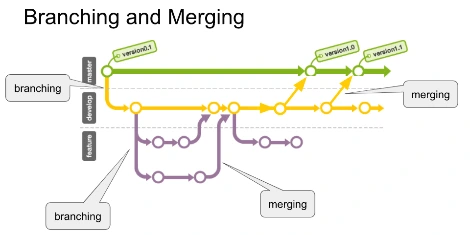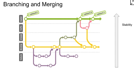 - branching과 merging이 필요한 이유 : 여러 단계에 걸쳐서 기능을 만들고 버그를 없앤 후에 end-user에게 배포하려고