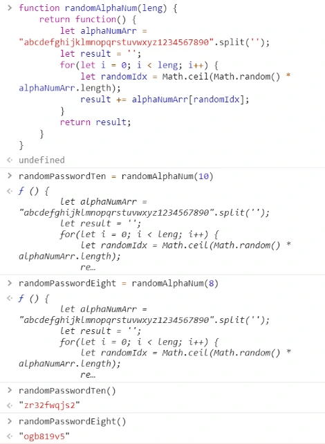 closure 함수를 사용하면 비밀번호 자릿수를 다양하게 변경해서 함수 사용 가능