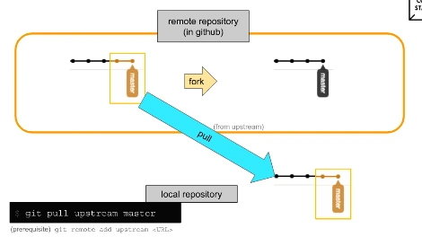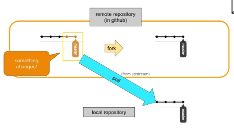 repository를 처음 소유하고 배포했던 maintainer가 소스 코드에 변경을 진행한 경우(from upstream), 원본 repository의 변경사항을 local repository로 가져오는 방법 : git pull upstream master