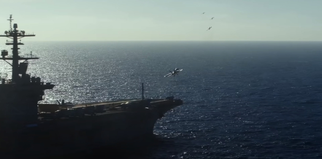 참고로 탑건은 항공모함(mother ship/carrier)마저 (오프닝)최신전투기→(후반부)구형전투기의 시퀀스를 따르고 있습니다.