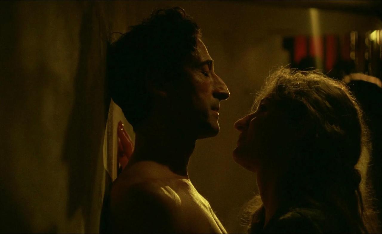 도착한 날 야심한 밤, 라즐로는 사창가를 찾아 매춘부 여성에게 유사 성행위 오랄(삽입은 않고 입으로만 하는)을 하는데요. 여성과의 구도가 묘하게 불편하면서도 기이합니다. 만약 출산 시퀀스의 연속이라 생각해볼 때 대게 엄마가 아이 입에 젖을 물리겠지만, 성인인 라즐로는 오히려 매춘부의 입에 자신의 성기를 물리는군요. 포주에게 동성애자냐는 오해를 받아도 그는 끝까지 직접적인 성교를 하지 않습니다. 그나저나 영화 내내 몸 가운데에서 호흡하는 '입'과 '코', 걸어다니는 '다리'가 지속적으로 강조되는 듯한 기분이...