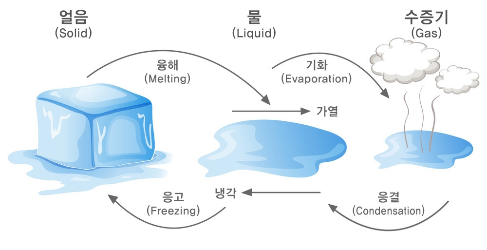 물은 고체(얼음/0℃ 이하), 액체(0~100℃), 기체(수증기/100℃ 이상)로 온도에 따라 상태가 변화하는데요. 단, 기압이나 상대습도, 불순물 함량에 따라 어는점이나 끓는점에 조금씩 차이가 날 수 있습니다.