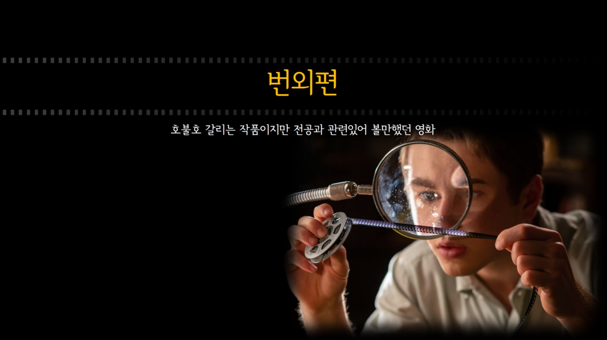 작품성으론 호불호가 꽤 갈리는 애매한 영화였지만 제 전공과 관련있기에 나름 재밌게 봤던 영화들입니다.