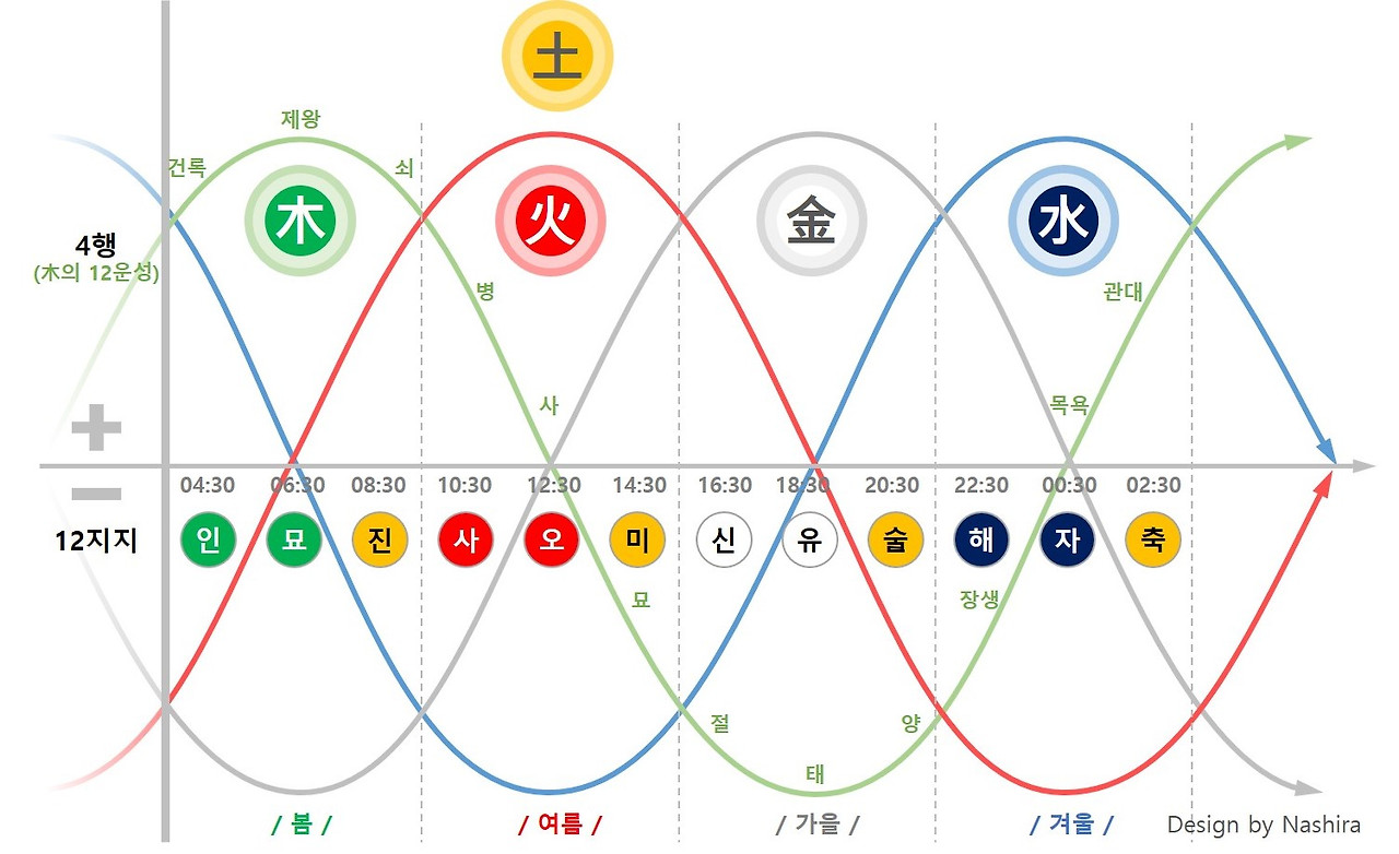 <계절/시간별 오행의 파동(木기준 12운성)>