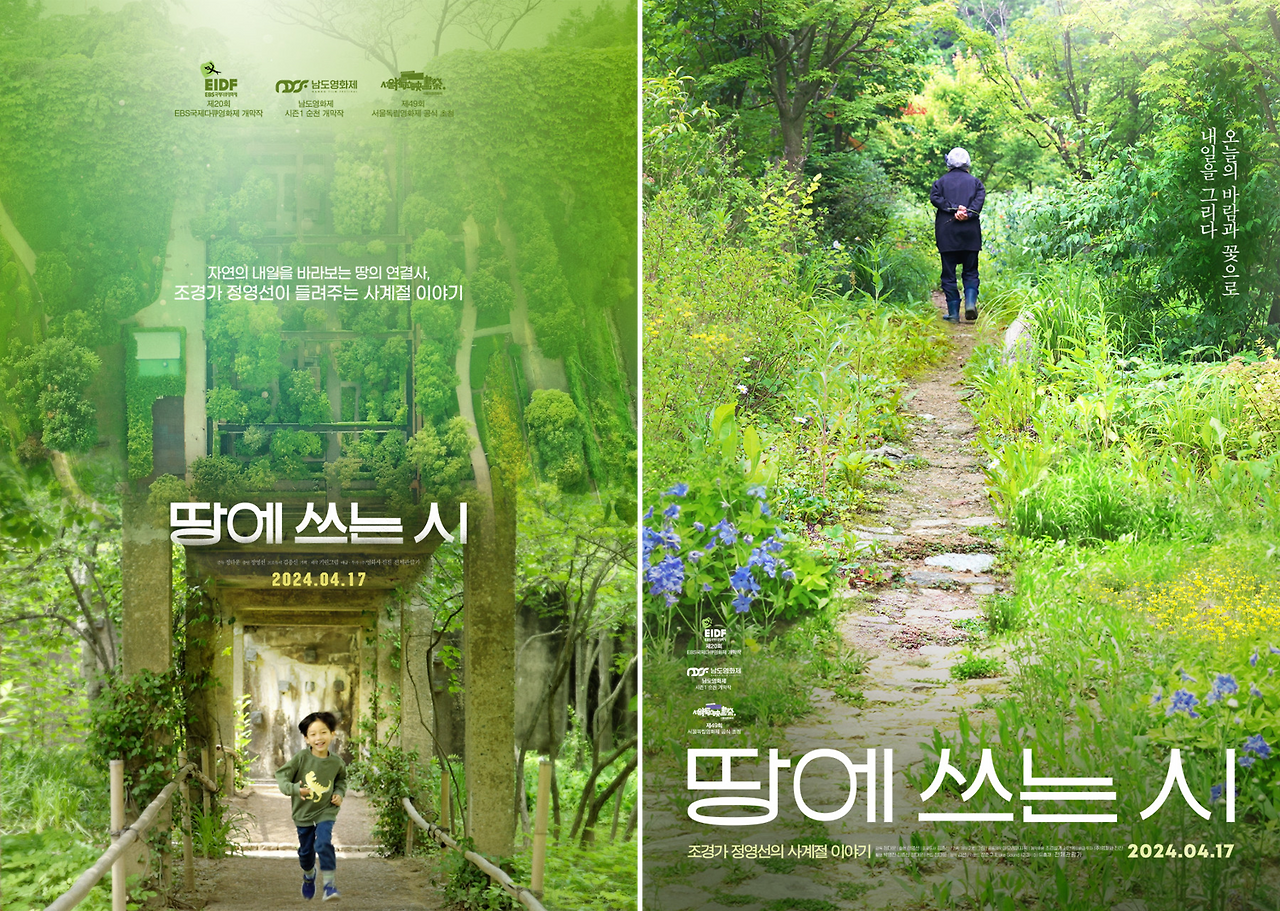 현재 개봉중인 <땅에 쓰는 시>라는 다큐멘터리인데요. 국내 1세대 조경가이자, 우리나라 최초의 여성 국토개발기술사인 정영선 조경가(83)님의 이야기를 담은 작품입니다.