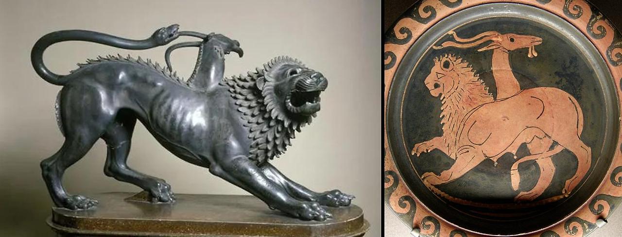 제목인 키메라는 그리스로마 신화에 나오는 괴물로 그리스어로는 암염소, 어린양을 뜻하고 인도유럽조어로는 추운 겨울을 뜻합니다. 그 형태는 사자, 뱀, 불을 뿜는 염소+산양의 결합체로 히타이트 전설에서는 사자가 봄(木), 불을 뿜는 염소/산양이 여름(火), 뱀/용은 가을과 겨울(金,水)을 상징합니다.