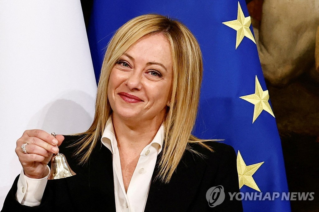 <전임 총리 마리오로부터 내각 이양을 의미하는 종(캄파넬라)을 받아든 멜로니 현 총리>