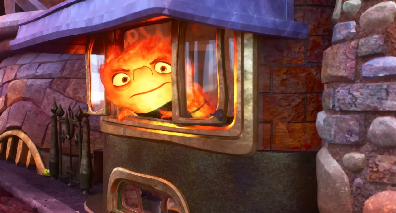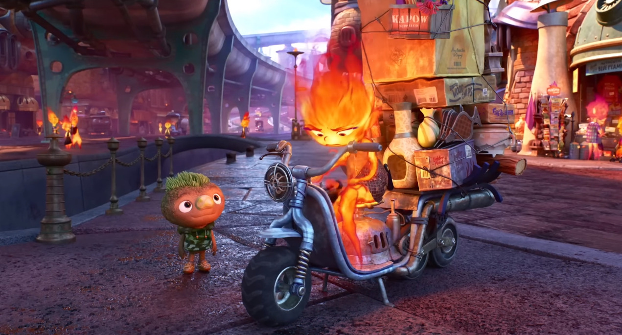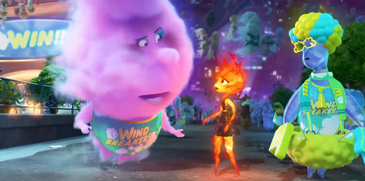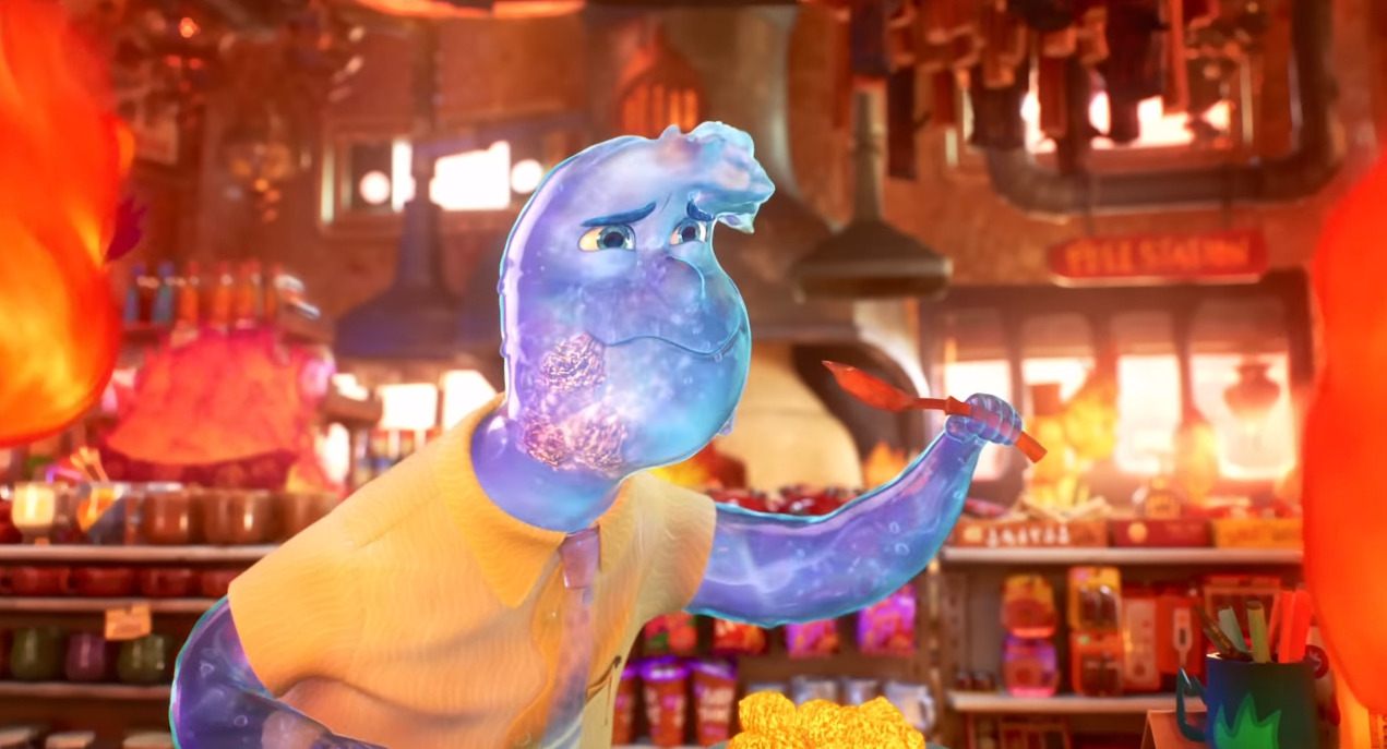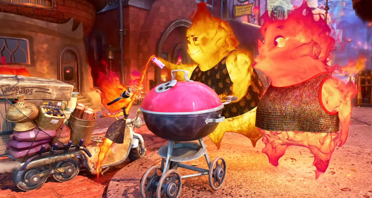 엠버의 동네 파이어타운으로 찾아온 웨이드, 아래로 흐르는 속성이 있는 그를 땅에서 하늘 위로 띄워주려고 엠버가 열기구를 만듭니다. 웨이드가 하늘 위로 증발하거나, 땅 속으로 스며들지 않게 막아주는 상황이지요.