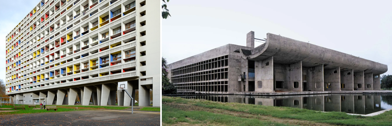 이 브루탈리즘의 본류를 잠시 거슬러 올라가보면 영화 속 '자유의 여신상'처럼 '르 꼬르뷔제'란 스위스/프랑스 건축가가 갑자기 팡~! 떠오르는 모더니즘에 닿게 되는데요. 자유의 여신상이 조각가 바르톨디의 어머니 모습을 본딴 것처럼 꼬르뷔제는 모더니즘의 어머니 같은 존재입니다. 그리고 모더니즘 건축의 씨앗을 세상에 널리 퍼뜨린 건 주인공 라즐로가 공부했다던 독일의 예술학교, 바우하우스라 할 수 있습니다.