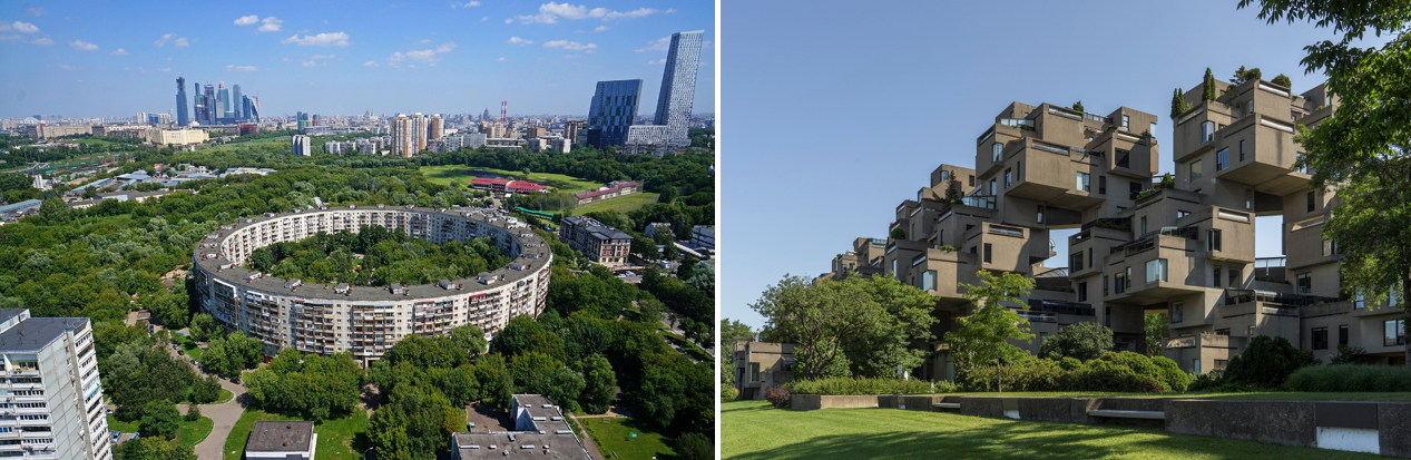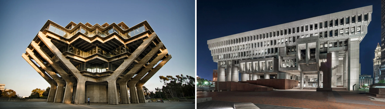 마치 라즐로-해리슨(작용-반작용)의 관계처럼 모더니즘-포스트 모더니즘이 서로 영향을 주고받으며 기싸움을 하던 시기는 막 2차 세계대전이 끝나고 냉전으로 넘어가던 때였습니다. 이 때 영국에서 시작된 브루탈리즘은 모더니즘의 기능성을 극대화시켜 값싼 콘크리트로 빠르게 전후 복구/재건을 할 수 있다는 엄청난 장점을 갖고 있었습니다. 동구권(소련 등)에서는 주로 모두에게 평등한 주택공급 측면에서 브루탈리즘을 활용하였고, 이로 인해 사회주의 건축양식이란 꼬리표가 따라붙곤 했습니다. 한편 서구권(미국 등)에서는 오히려 이 양식을 주로 관공서나 대학, 도서관, 연구시설에 적용하면서 자본/기술력을 홍보/선전하는 거대한 랜드마크처럼 활용했습니다.