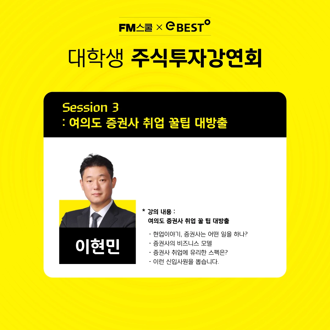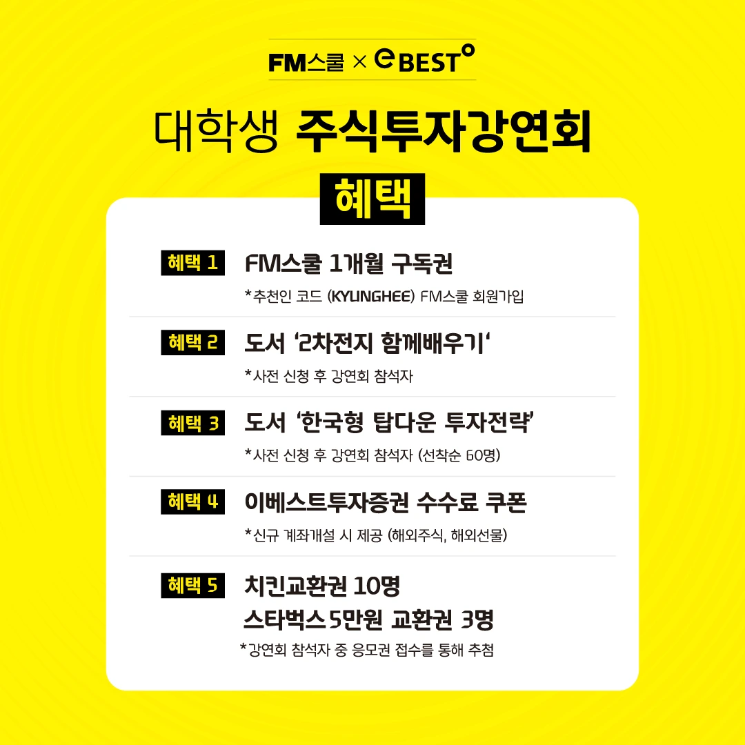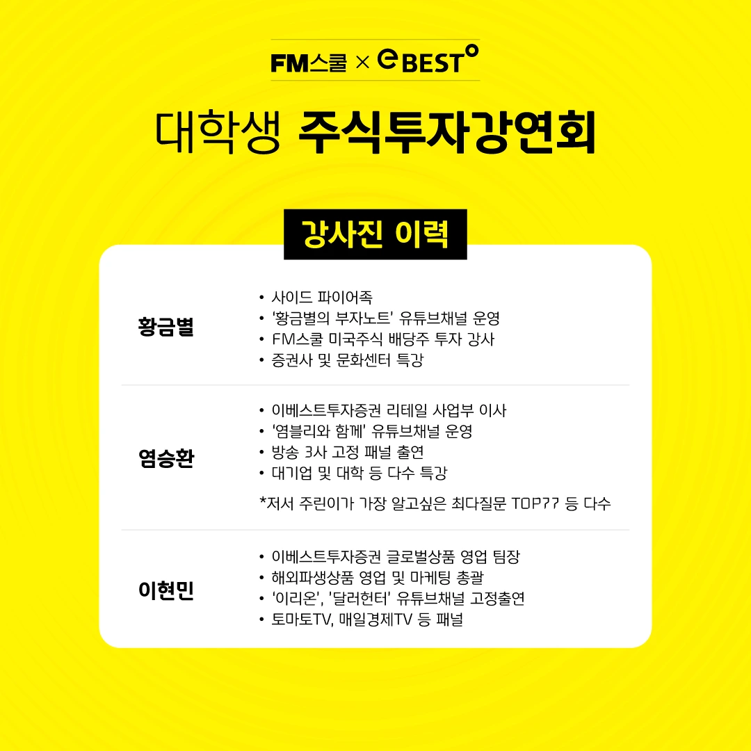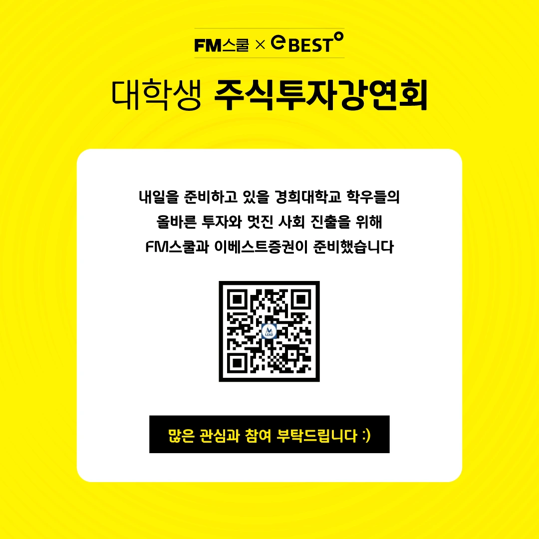 경희대학교 학우들의 올바른 투자관 정립을 위해 FM스쿨과 이베스트증권 그리고 저 황금별이 열심히 준비해봤습니다!