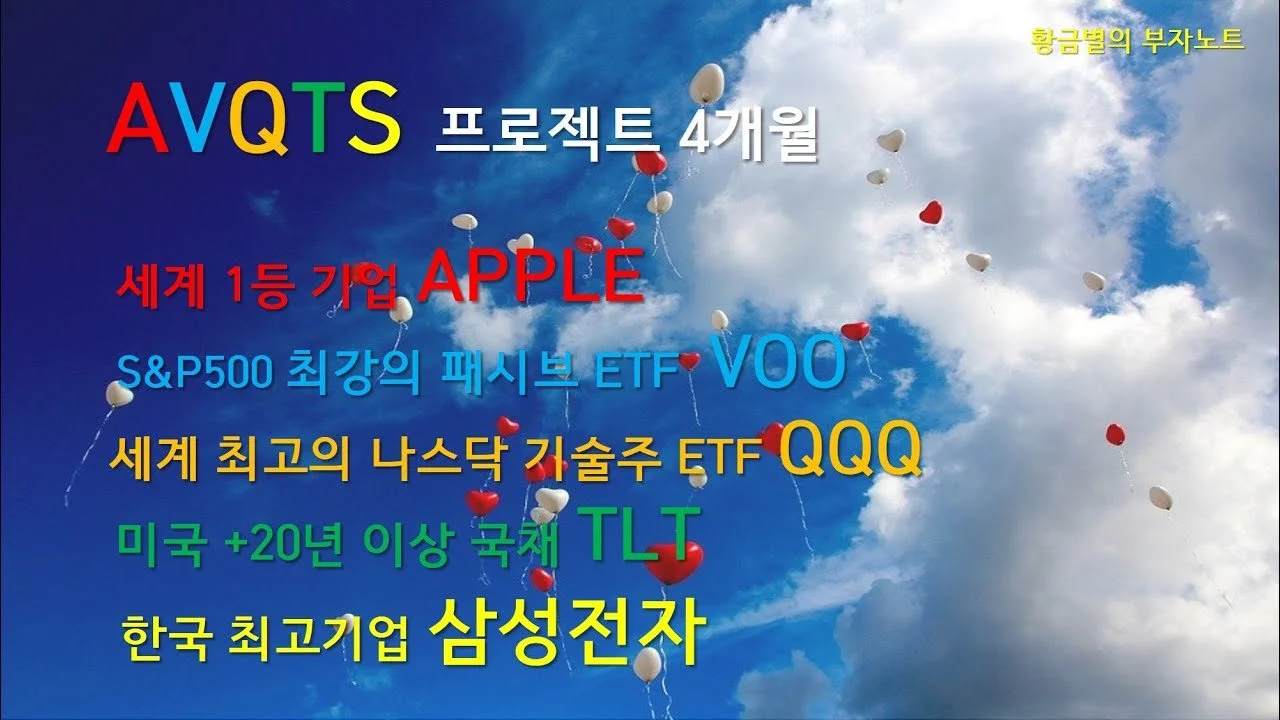 세계 1등 기업 애플, S&P500 지수를 추종하는 최강의 패시브 ETF인 VOO, 세계최고의 기술주들이 모인 나스닥100을 추종하는 QQQ, 미국 20년 이상 국채에 투자해서 폭락장의 리스크를 헷징해주는 TLT, 그리고 한국을 대표하는 최고기업 삼성전자까지 이 5개 종목을 매월 1주씩 매수하는 프로젝트인 AVQTS가 이제 4개월차에 접어들었습니다. 4개월차 운용 성과에 대해 공유드리겠습니다.