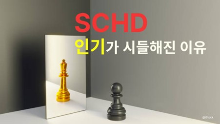 2022년 폭락장에도 좋은 방어력을 보여주며 큰 사랑을 받던 이 훌륭한 ETF는 2023년 역사적인 나스닥 상승 퍼포먼스가 기록된 해에 매우 부진한 성과를 기록하며 졸지에 천덕꾸러기로 전락하게 됩니다. 시장이 30% 이상 상승하는 강세장에서 SCHD 주가는 1%도 성장하지 못했고, 매년 10% 이상 증액되던 배당금도 2023년에는 4% 증액되는 데 그치고 말았죠. SCHD는 어쩌다가 그저 그런 배당 ETF 취급을 받게 되었을까요?