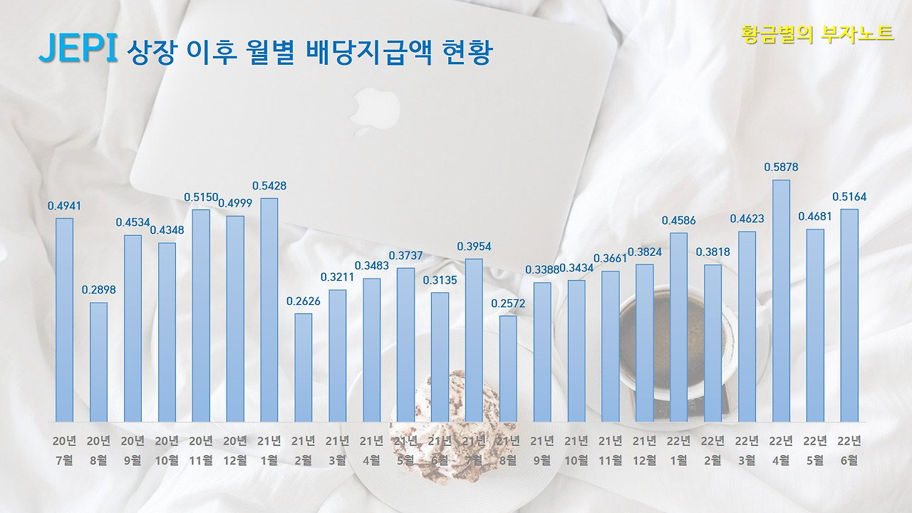 오늘은 최근 시장 하락에도 8%가 넘는 높은 배당률을 나타내며 위기에도 뛰어난 방어력을 보여주고 있는, JEPI 배당금에 대한 분석을 준비했습니다. 시장이 너무 안좋기 때문에 JEPI도 주가가 하락하고는 있습니다만, 주가 하락시 배당금은 어떤 성과를 보여주고 있을지 궁금했는대요. 놀라운 결과가 나왔습니다.
