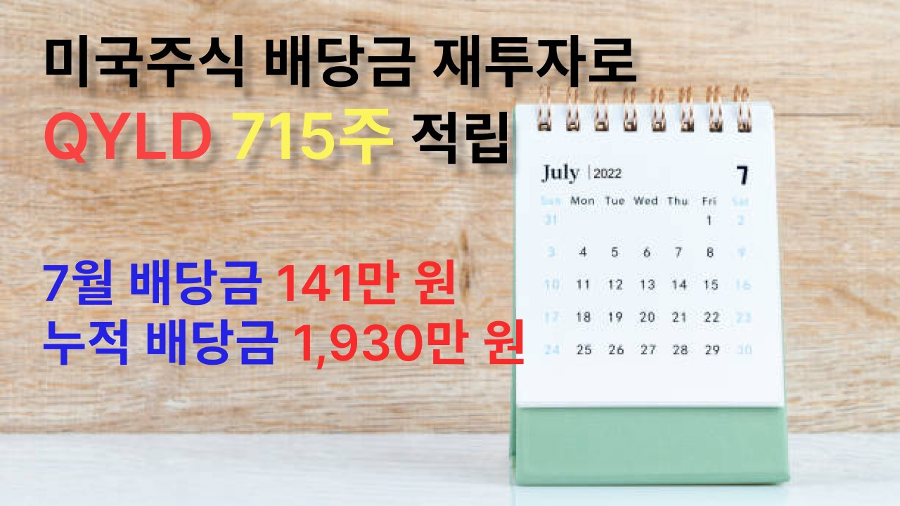 배당금 재투자 계좌내 QYLD 보유수량이 작년 12월 402주에서 7월 현재 715주로 증가했습니다.