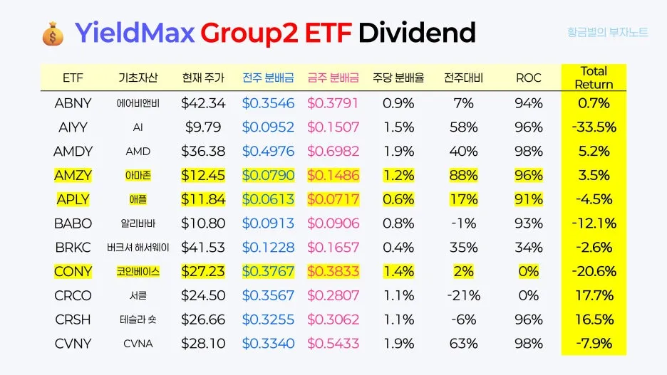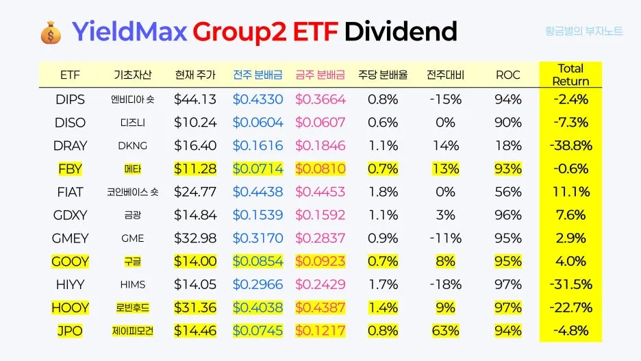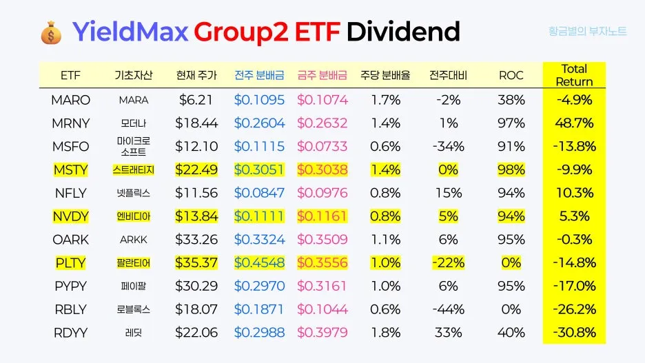 오늘은 일드맥스 그룹2의 4월 3번째 배당 정보를 안내해 드리면서, 황금별만의 '일드맥스 투자 원칙'도 함께 공유해 드리려고 합니다. 제 투자 방식이 무조건적인 정답은 아니니, 여러분의 투자 여정에 좋은 참고 자료로만 활용해 주시면 좋겠습니다.