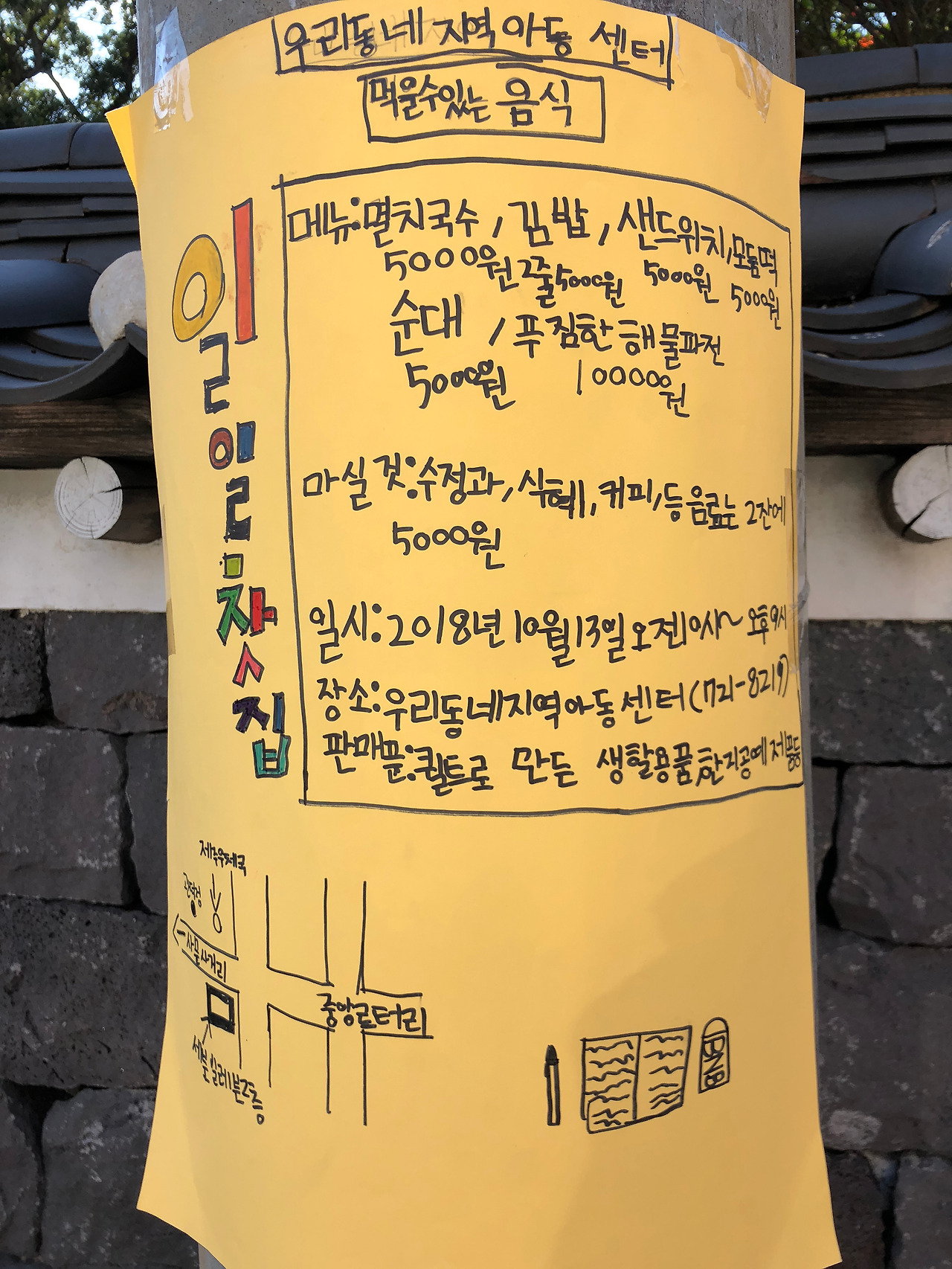 “안녕하세요. 우리동네 지역아동센터입니다. 일일찻집을 하려고 하는데 포스터를 붙여도 될까요?”